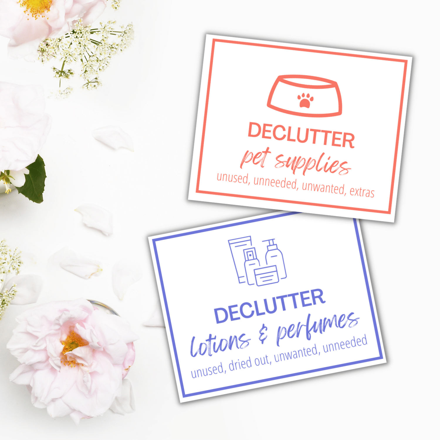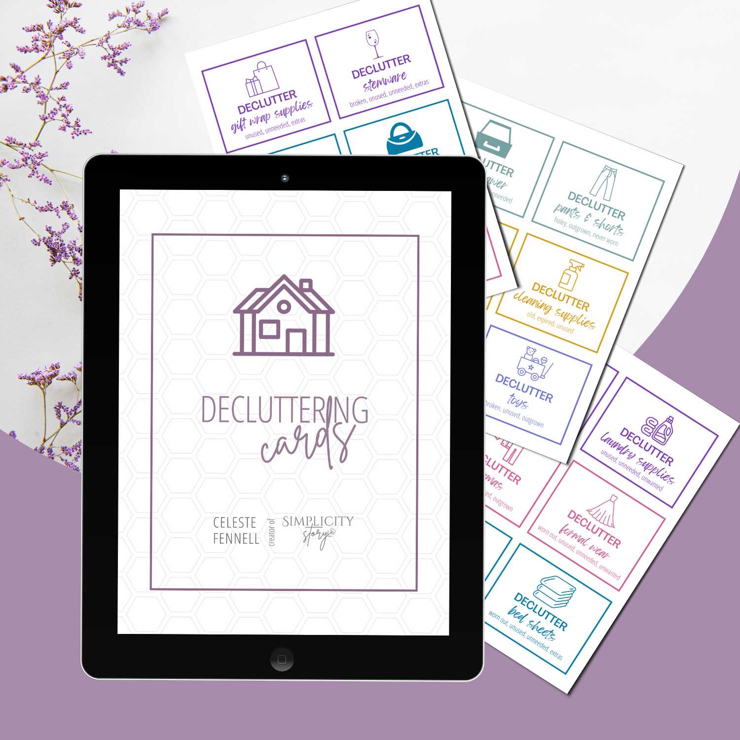 - A digital PDF download with 90 decluttering cards that will help you take action on the clutter in your home.